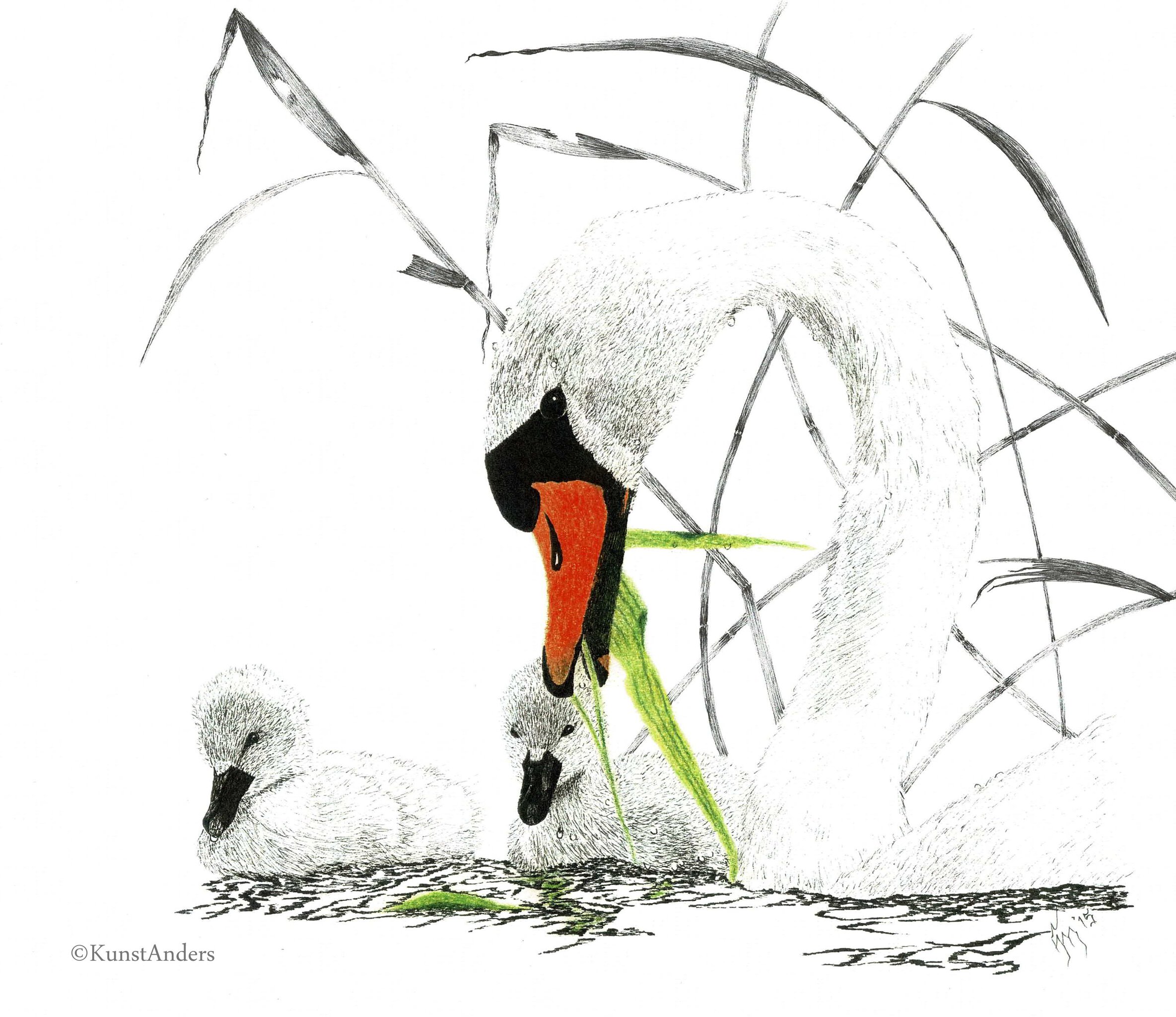 Wildlife Dieren Natuur Geboorte Zwaan Vogels Pentekening Felicitatie Kunstanders