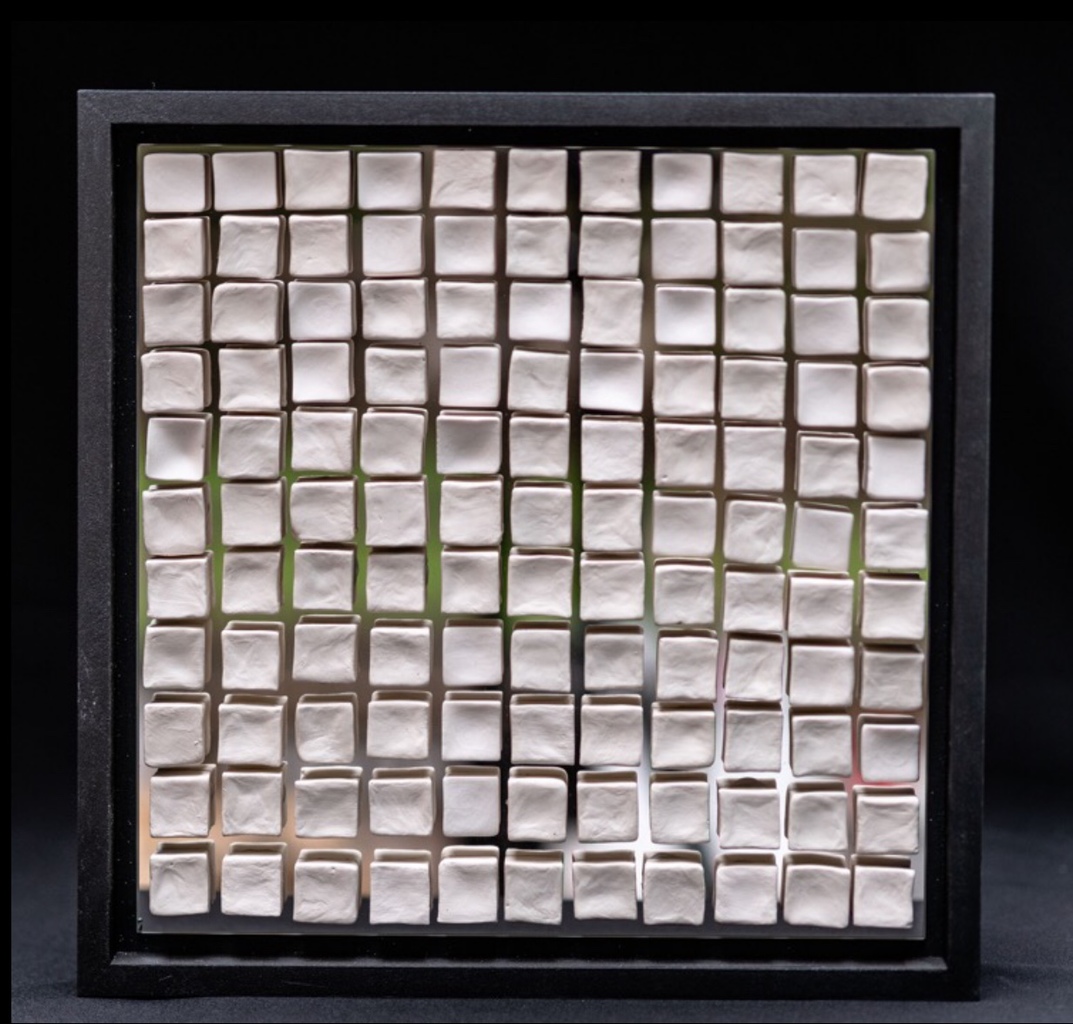 Blokjes van porselein bevestig op een spiegel incl. baklijst.