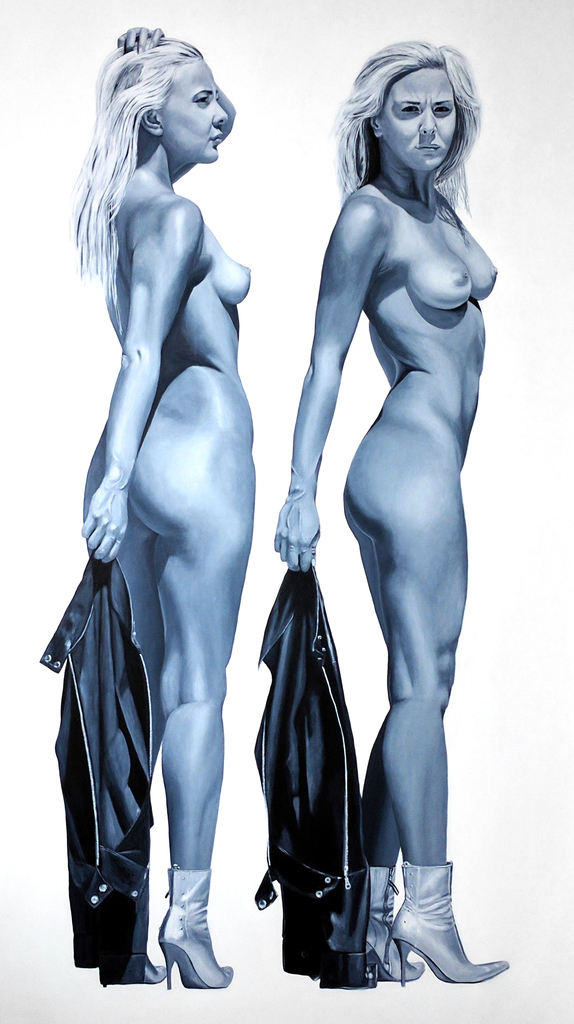 Portret Naakt Figuur Vrouw Dubbel Tweeling Staand Levensgroot Dubbelportret Groepsporttret