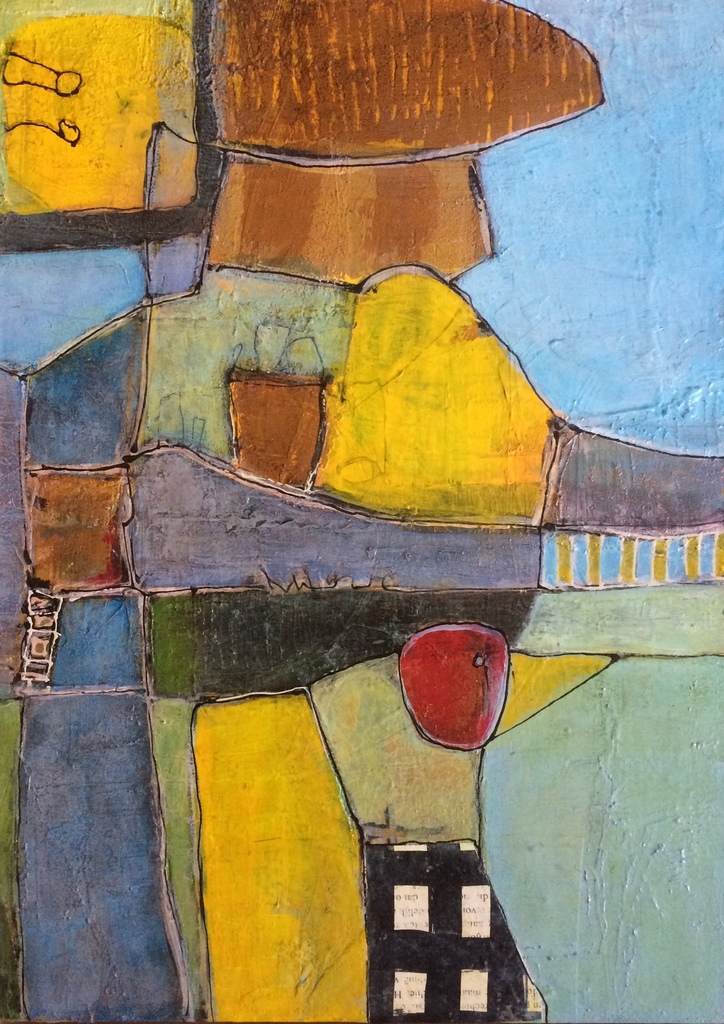 Ik maak schilderijen in gemengde techniek die met een zorgvuldige keuze van compositie, materiaal en kleur veel ruimte laten voor verbeelding.