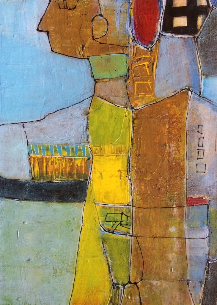 Ik maak schilderijen in gemengde techniek die met een zorgvuldige keuze van compositie, materiaal en kleur veel ruimte laten voor verbeelding.