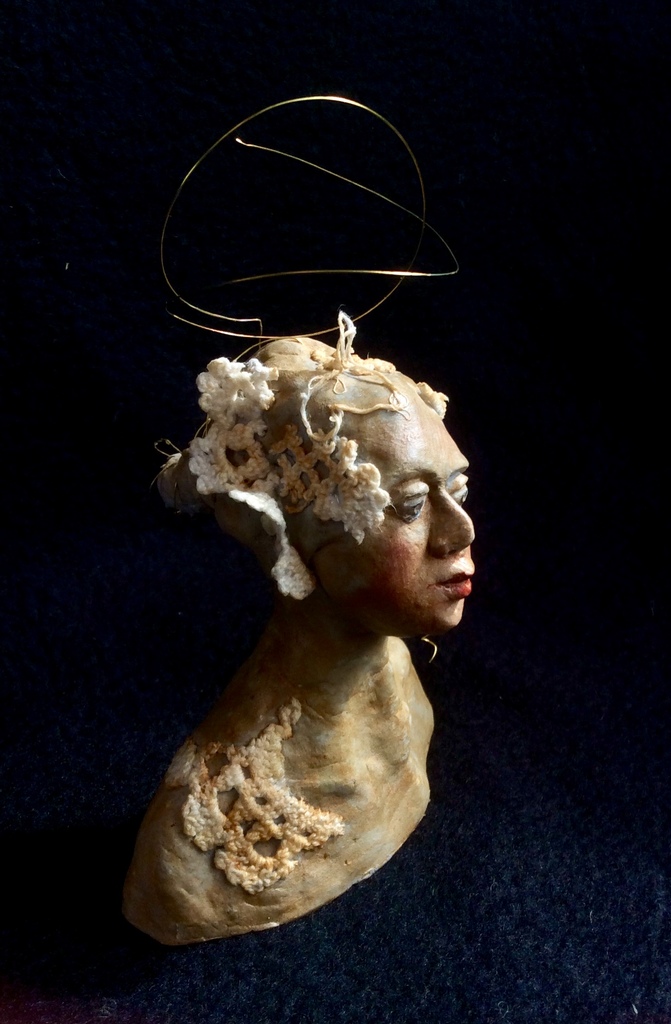 Klei, textiel en koperdraad.