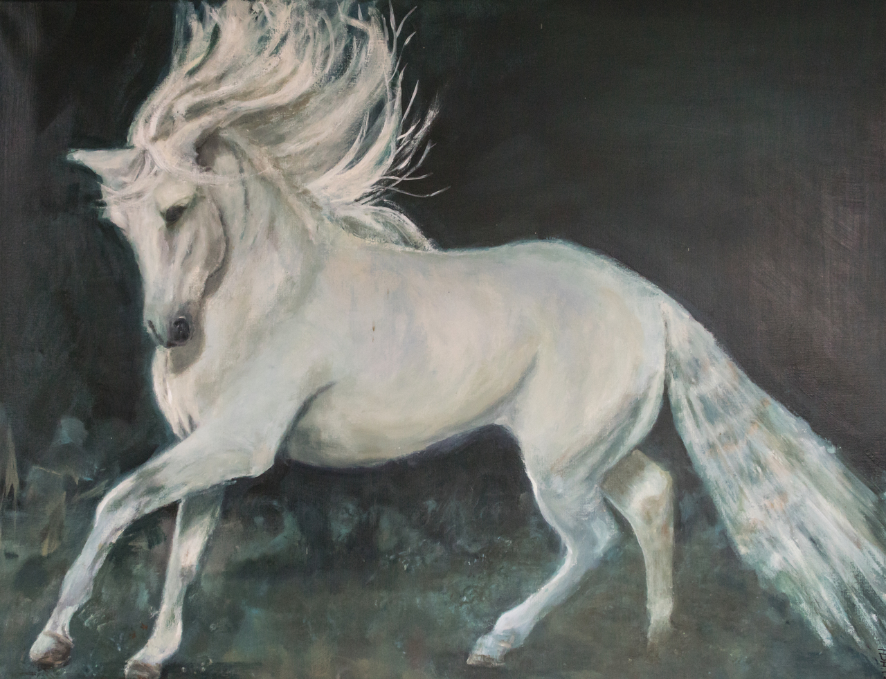 Naarmate de jaren vorderen, is er een afwisselende collectie ontstaan. Niet één doek is hetzelfde. Het is de uiting van dát moment. Mijn werk gaat over emotie en de sferen van het raakvlak tussen dag en nacht: de stilte die me omhult en waar ik één mee ben.