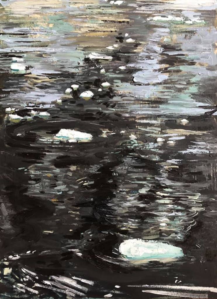 Schilderij Zwart Water Olieverf Natuur Ijs