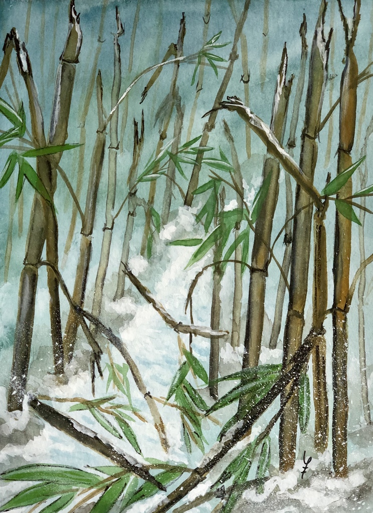 Japanse Haiku “Ik hoor hoe de sneeuw in het nachtelijk duister bamboestengels breekt”