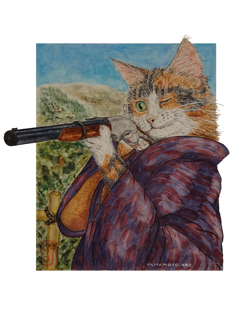 Kat Aquarel Watercolor Cat Japan Geschiedenis History Rifle Spencer Aizu Yae Yamamoto Joshitai Onnamusha
