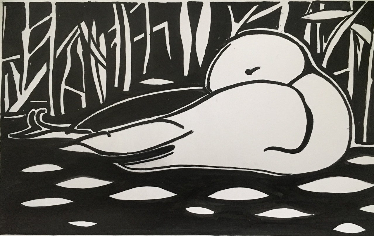 Water Natuur Inkt Riet Zwartwit Eend Zwemmend Golfjes