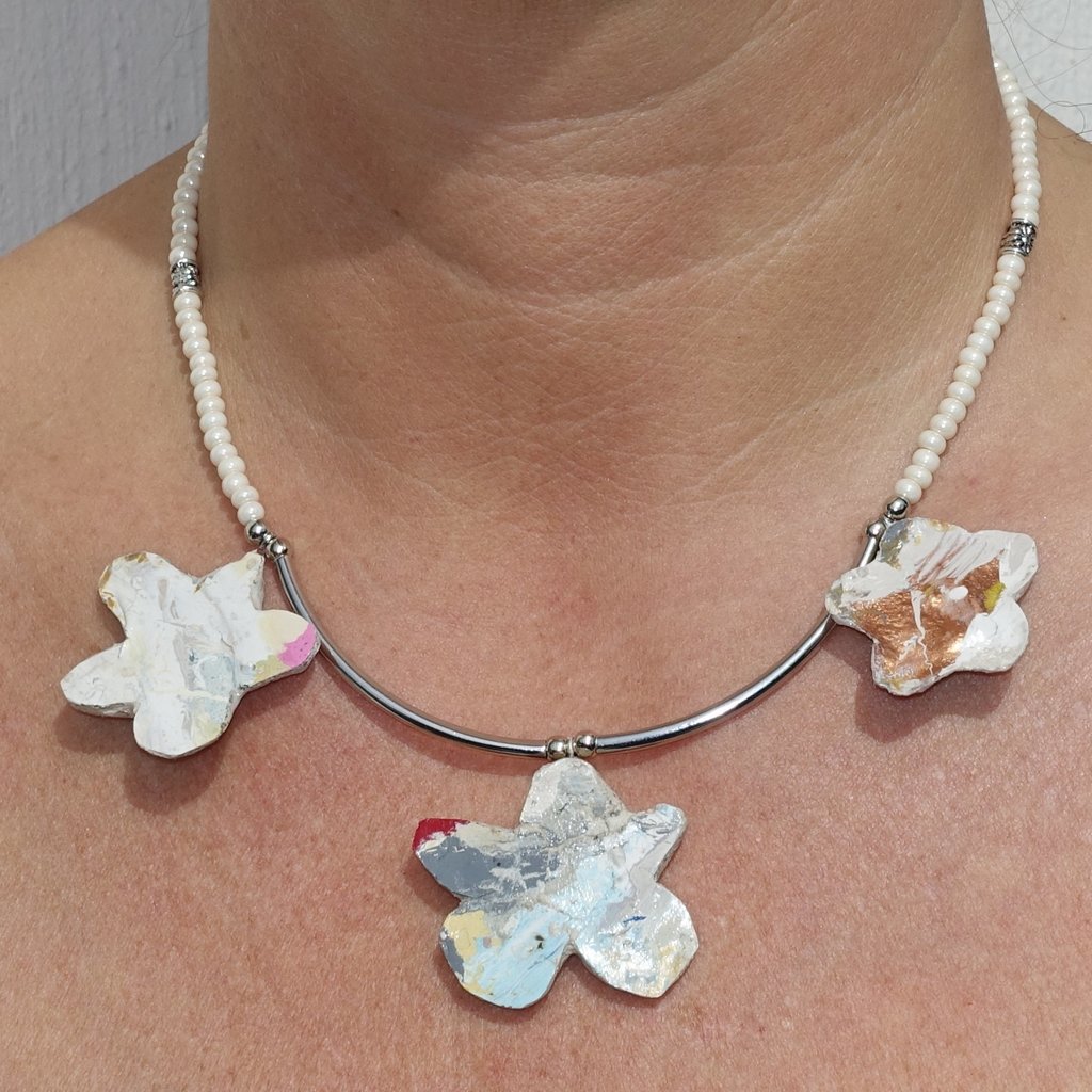 Ketting met 3 bloemen. Lengte zonder hanger is 41 cm