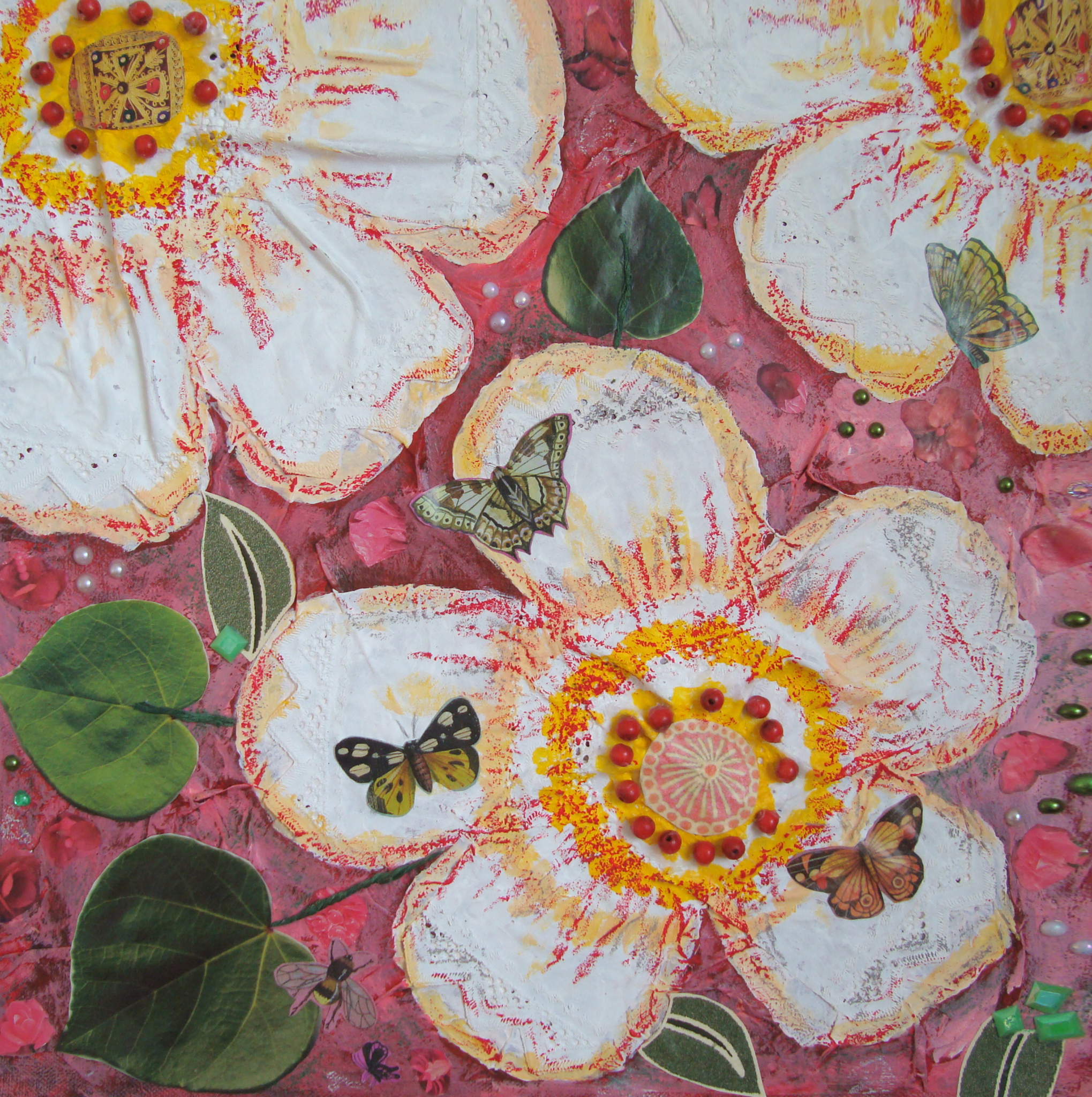 Wit Geel Bloemen Vier Vlinders Roze Collage Lente Gordijn Kralen Seizoenen Wasco