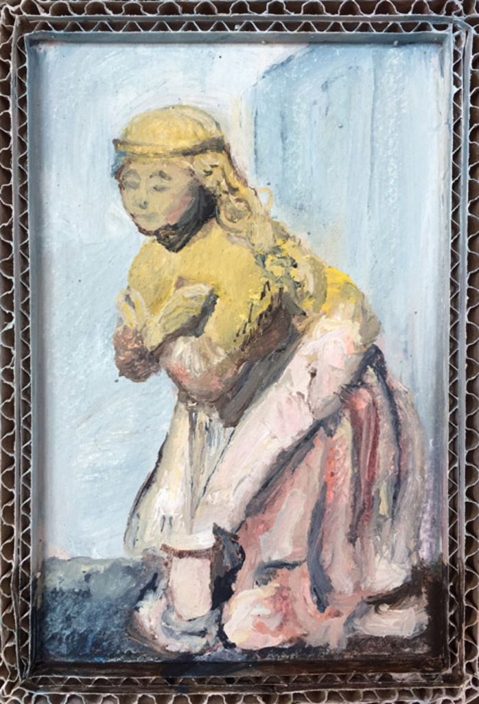 Vrij naar Franse sculptuur: Maria Magdalena met zalfpot” eind 15e eeuw, onbekende kunstenaar
