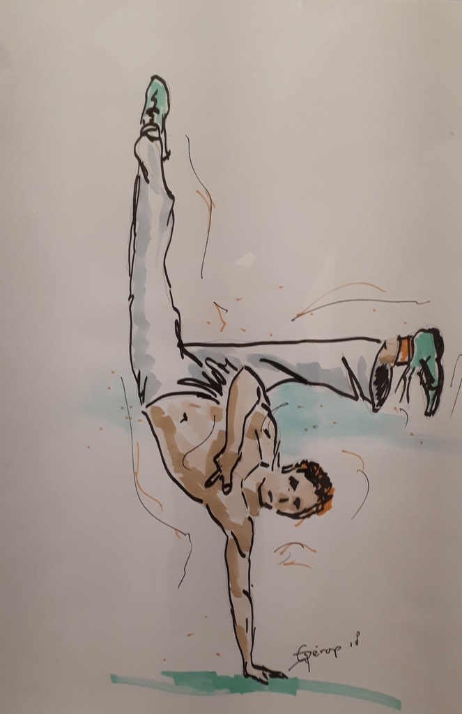 Georges Dérop, kunstschilder met als thema Sport en bewegen. Gefascineerd door het schermen van vroeger tot nu. De spanning die uitgaat van om dat ene moment op doek te zetten inspireert mij. Maar ook de natuur in al zijn pracht en glorie zet ik graag op het doek. Speciaal onderwerp is de geschiedenis van het zwaard. van actie tot en met stilleven, van Romeinen tot heden. En verder maak ik portretten van mijn familie en teken ik dieren en vogels uit de wildernis alsmede huis dieren