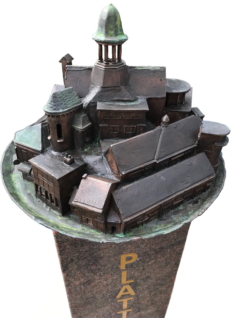 Voor de wijk Plattenburg is dit bronzen buitenbeeld gemaakt: een schaalvorm met daarin een aantal (delen van), gebouwen, huizen en elementen die in de wijk terug te vinden zijn.