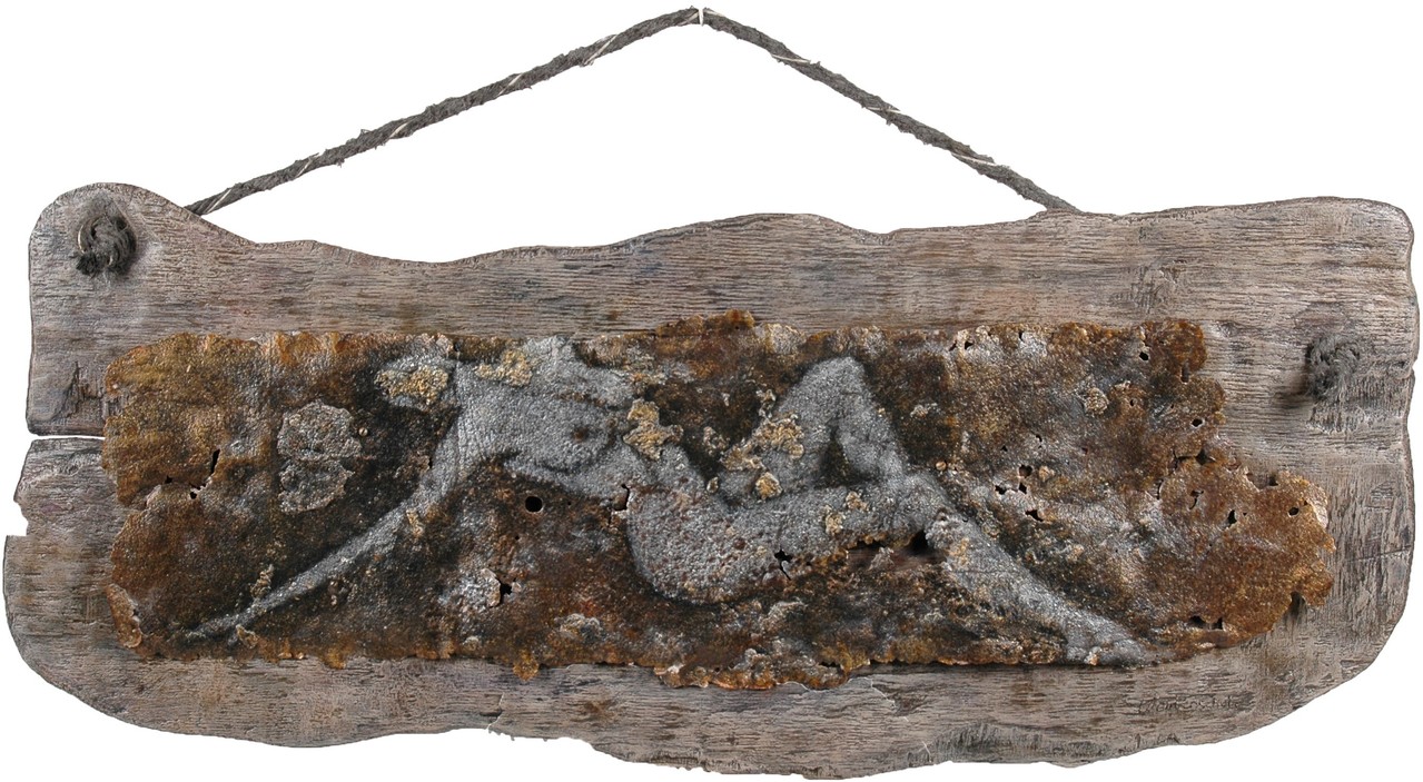 Aangespoeld ijzer op aangespoeld schroothout