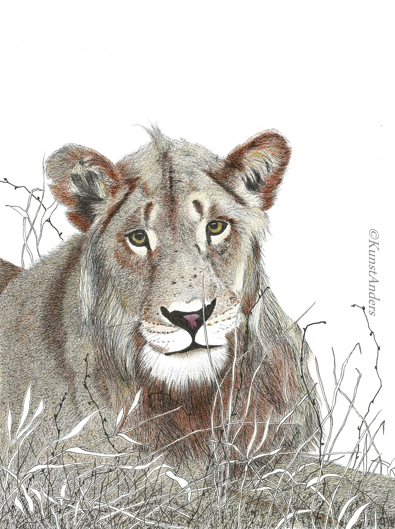 Wildlife Dieren Natuur Leeuw Pentekening Katachtigen Kunstanders