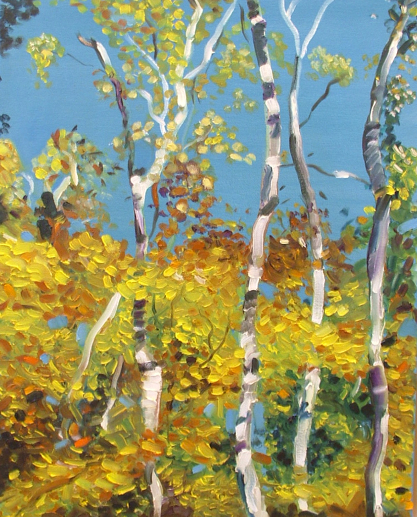 Abstract, berkenbomen in de Muskoka's, niet ver van mijn vorige woonplaats in Canada. Nat in nat geschilderd als compositie in de Canadese stijl.