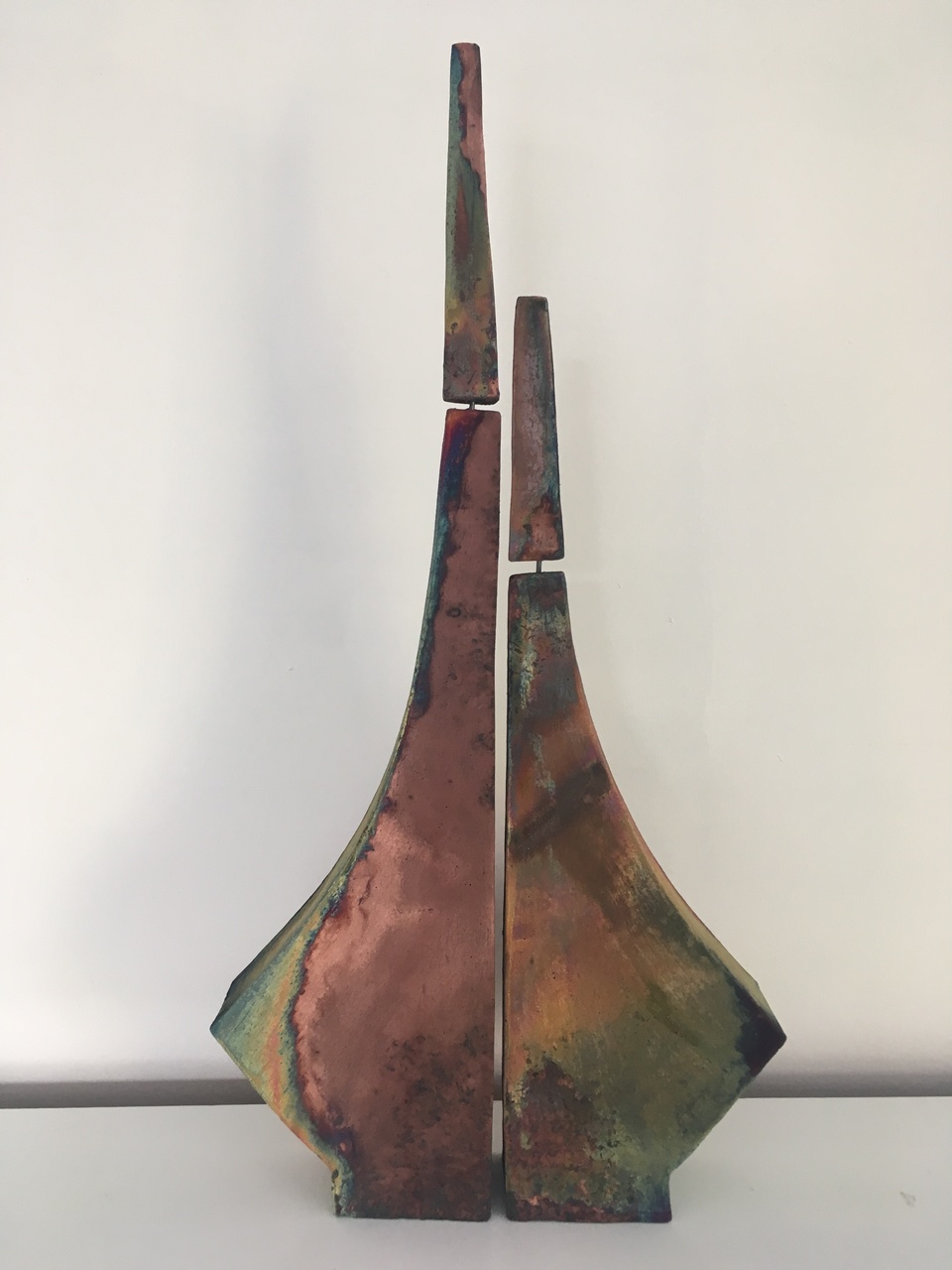 Dubbelvorm gemaakt van platen klei. Kopermat gestookt.