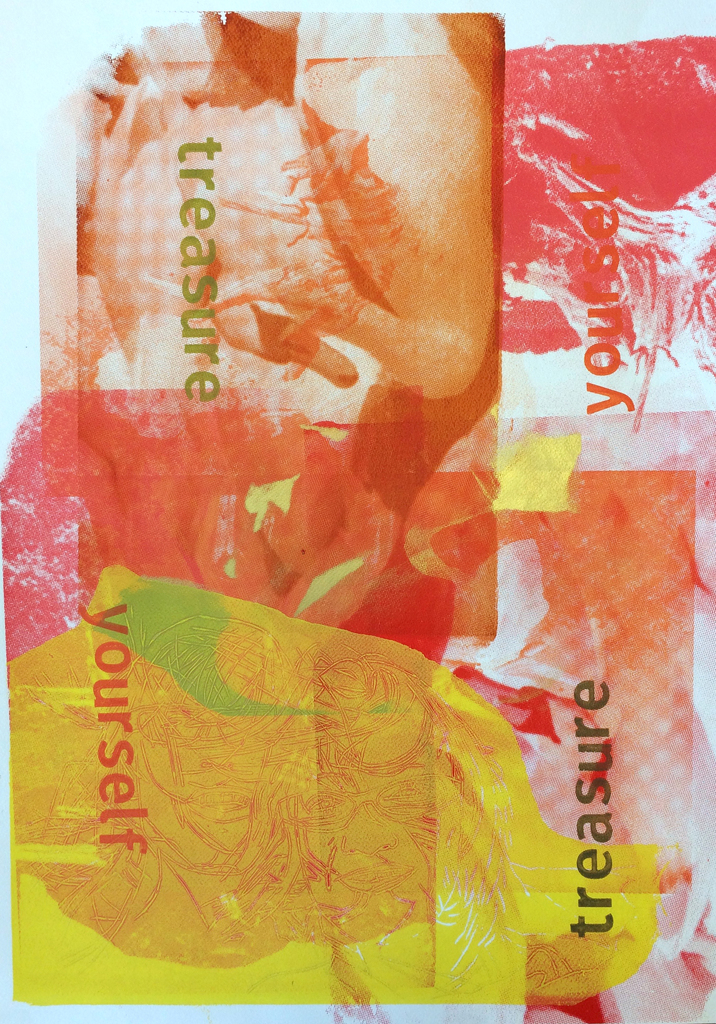 Vriendschap - liefde - vertrouwen - kostbaar - herhaling - linosnede - letterperss - gemengde technieken