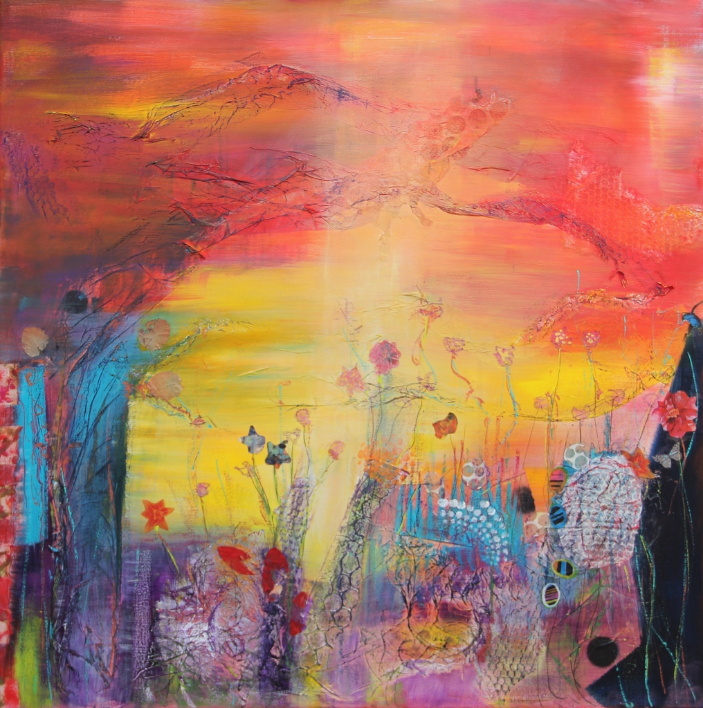 zonsopgang in heldere kleuren met mixed media