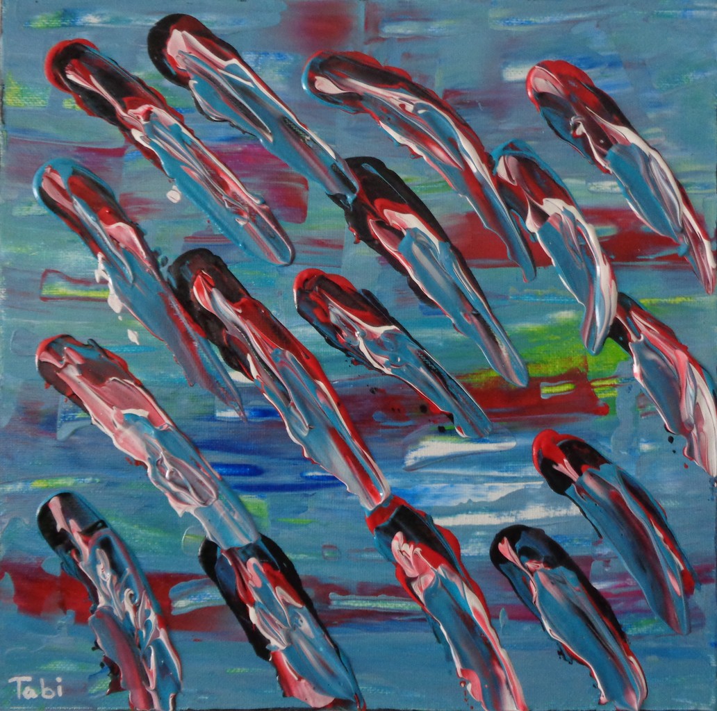 Dit schilderij heeft geen lijst nodig (29x29X3.5 cm) met hand geschilderd & gesigneerd acrylverf op doek VERKOCHT
