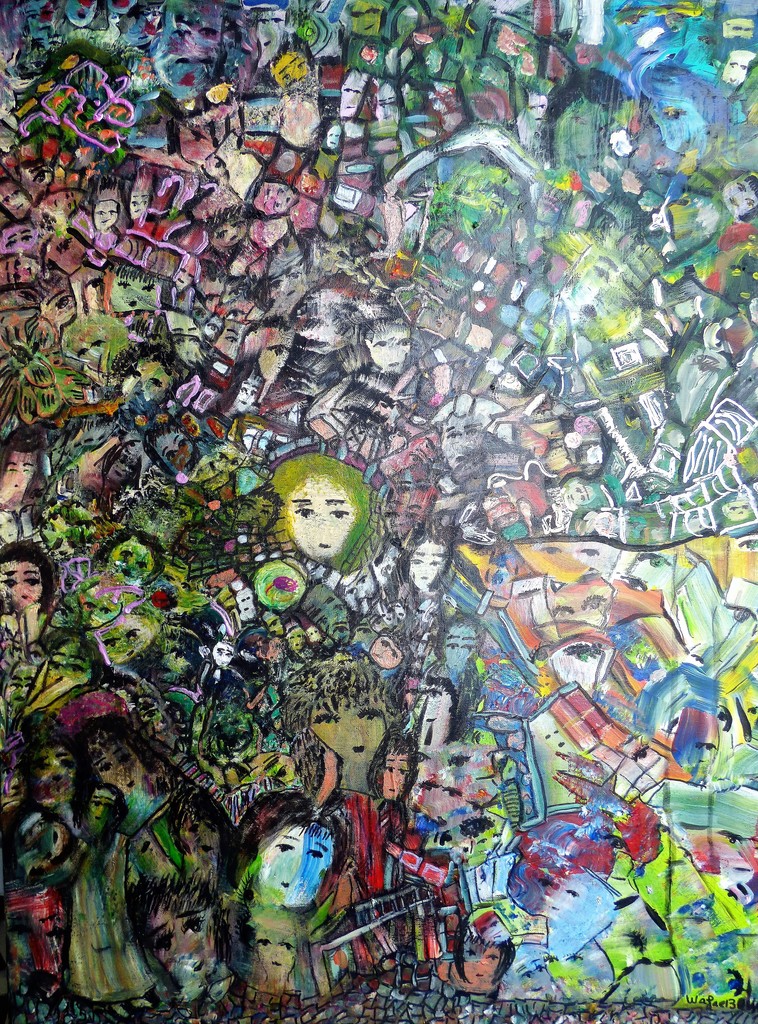 Ik ben Wafae el Houari, geboren in Marokko. In het verleden heb ik aardewerk versiering gedaan en recent heb ik een passie voor schilderen ontwikkeld. De rode draad in mijn werk zijn vrouwengezichten. Ik gebruik het als een manier om droefheid en geluk uit te drukken. Ik schilder voornamelijk op papier en canvas, maar gebruik ook andere methoden, zoals marmering van papier.