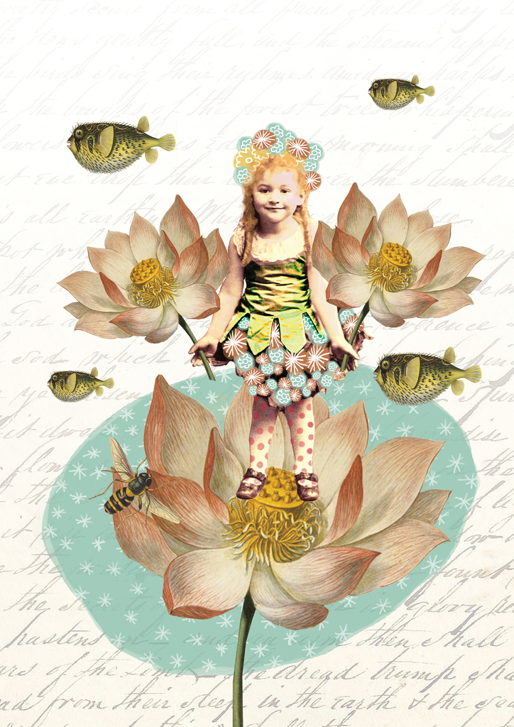 Een En Girl Collage Flower Lotus Print Is Als Ansichtkaart Deze Digitale Binnenkort Verkrijgbaar