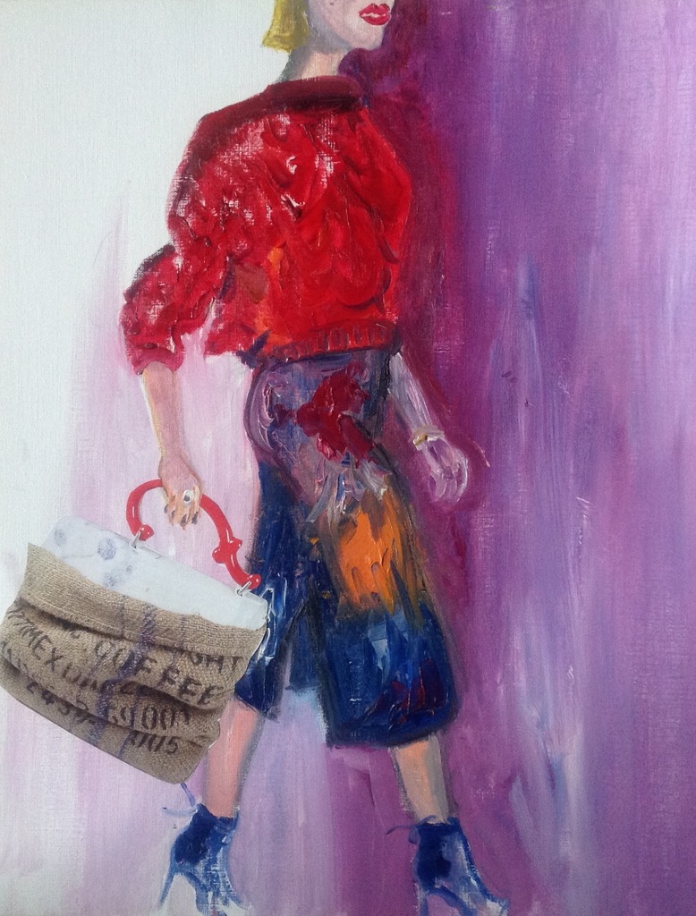 Rood Vrouw Papier Olieverf Tas