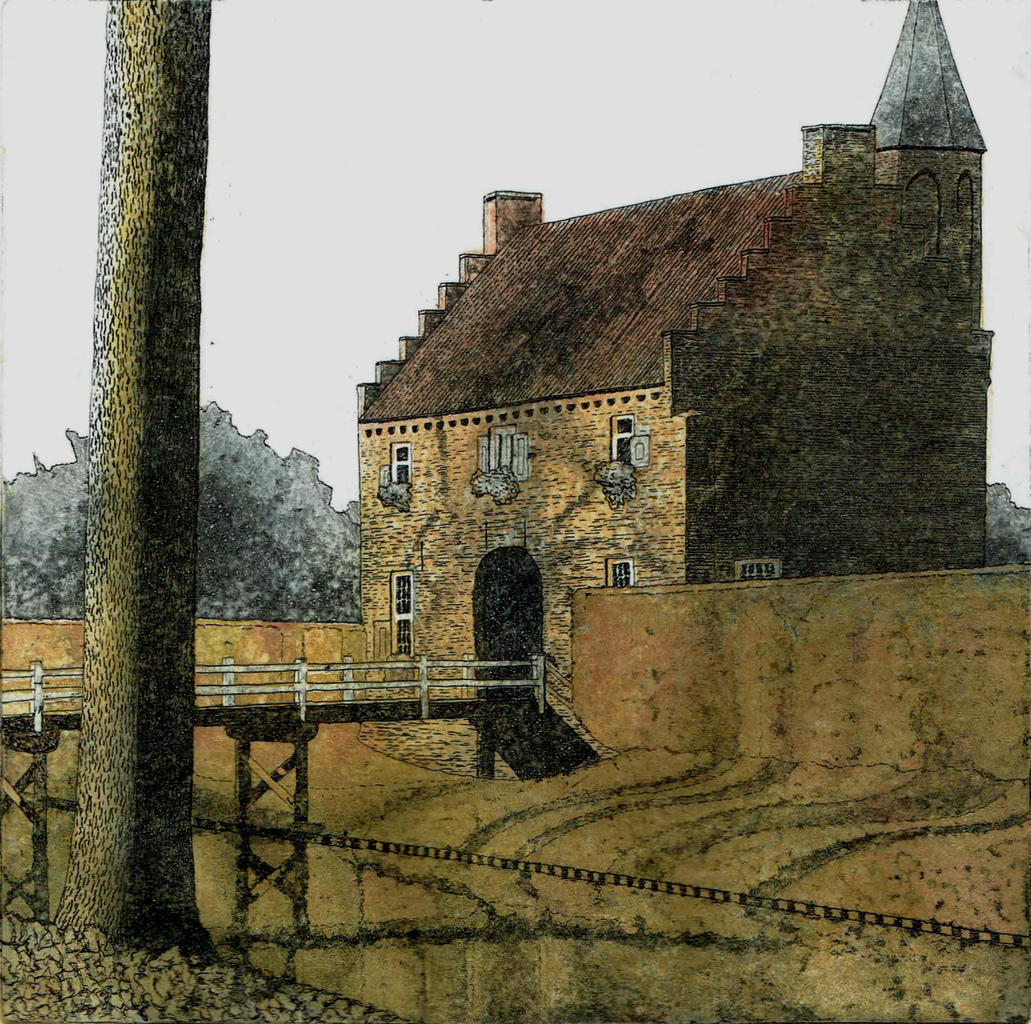 Het Poortgebouw van Kasteel Croy te Aarle-Rixtel. Oplage maximaal 35 stuks, tot nu toe 4 afgedrukt.