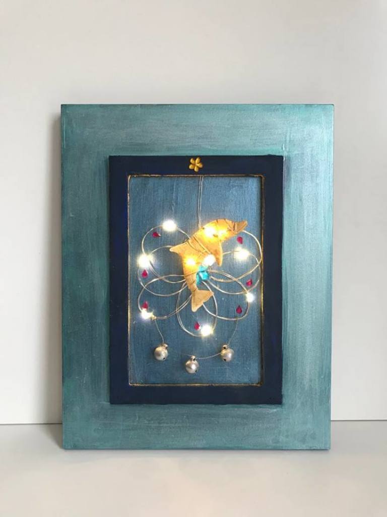 Alle muziekdoosjes/schilderijtjes die ik maak zijn uniek en hebben verlichting. In het object is een muziekdoosje verwerkt met trekkoordje met mogelijkheden uit verschillende melodieen, zoals Brahms Lullaby, Mozarts wiegenlied, Schuberts wiegenlied etc.