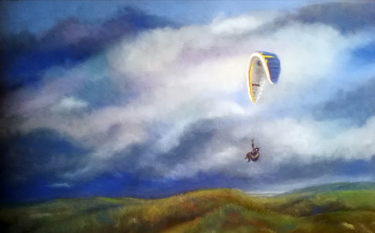 Zee Strand Blauw Wolken Tekening Lucht Pastel Duinen Katwijk Wassenaar Hangglider Paraglider