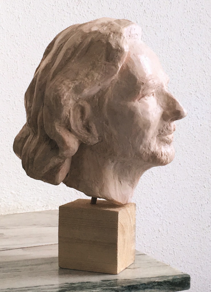 3 sessies van 2x1,5 uur. Het model vond het gezellig & spannend. In kunststof gegoten uiteindelijk, fraai, licht & prijsvoordelig.