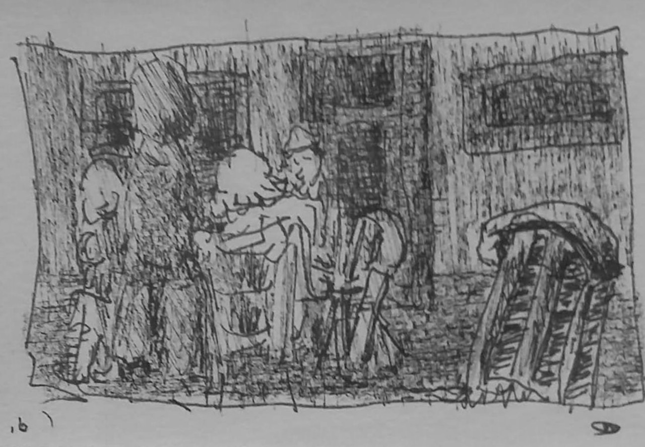 Theedrinken Zwart/wit Inkttekening Tekening Realistisch Dagelijks Leven