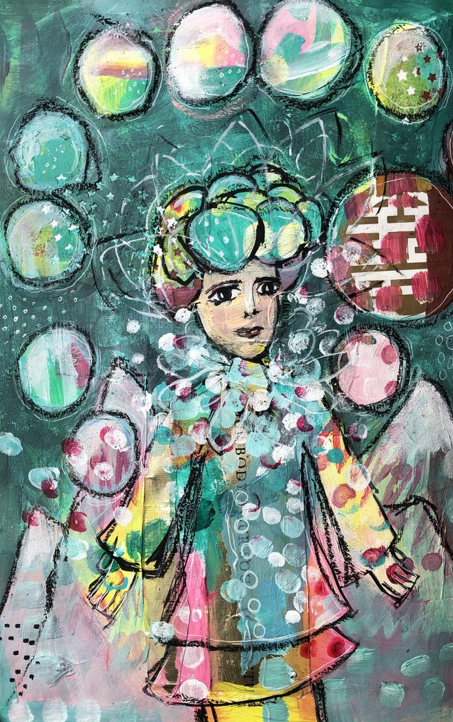 Circusjongens,collage,acryl mixed media