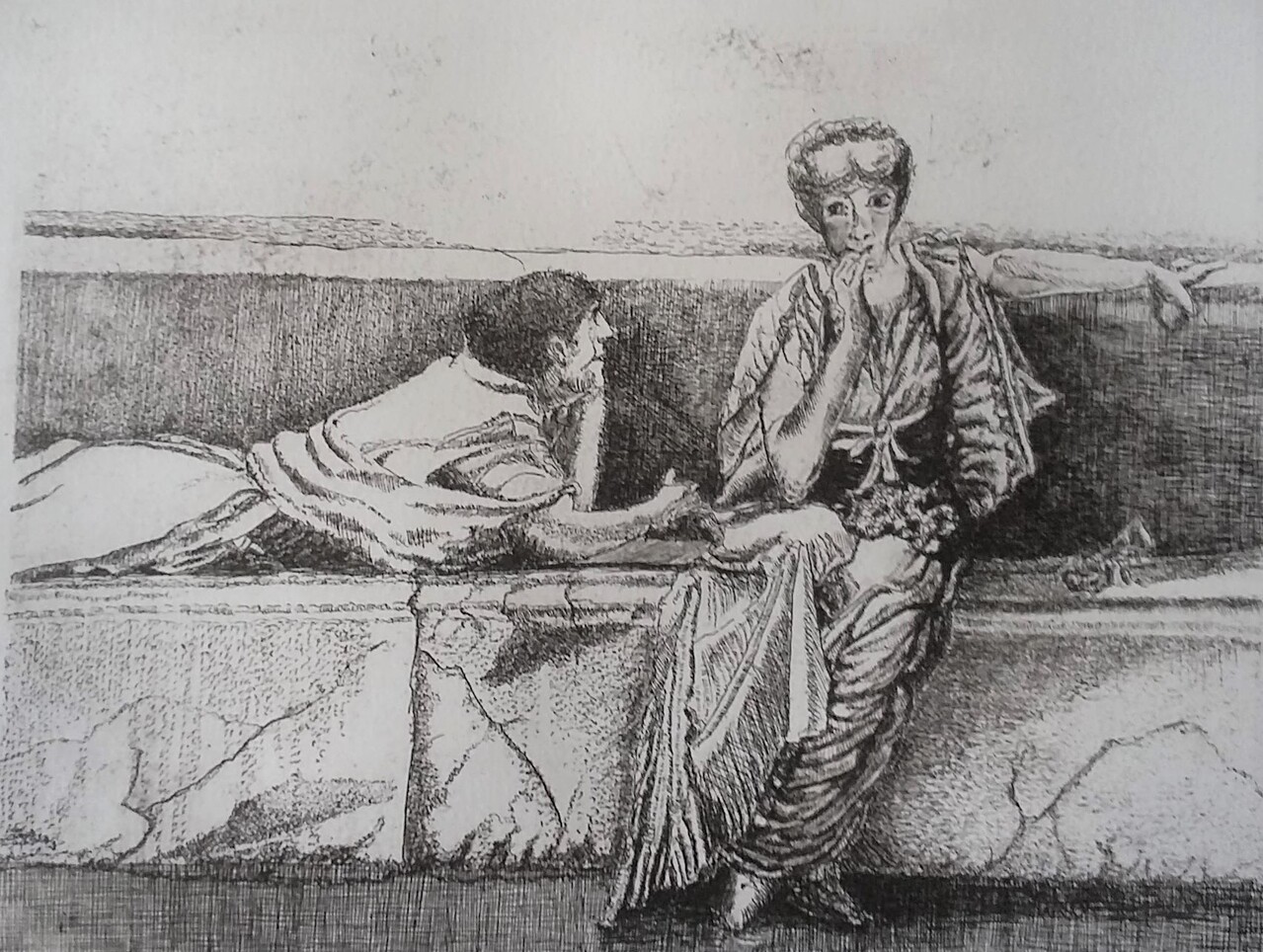 Etsen Grafiek Zwart Wit Mensen Realistisch