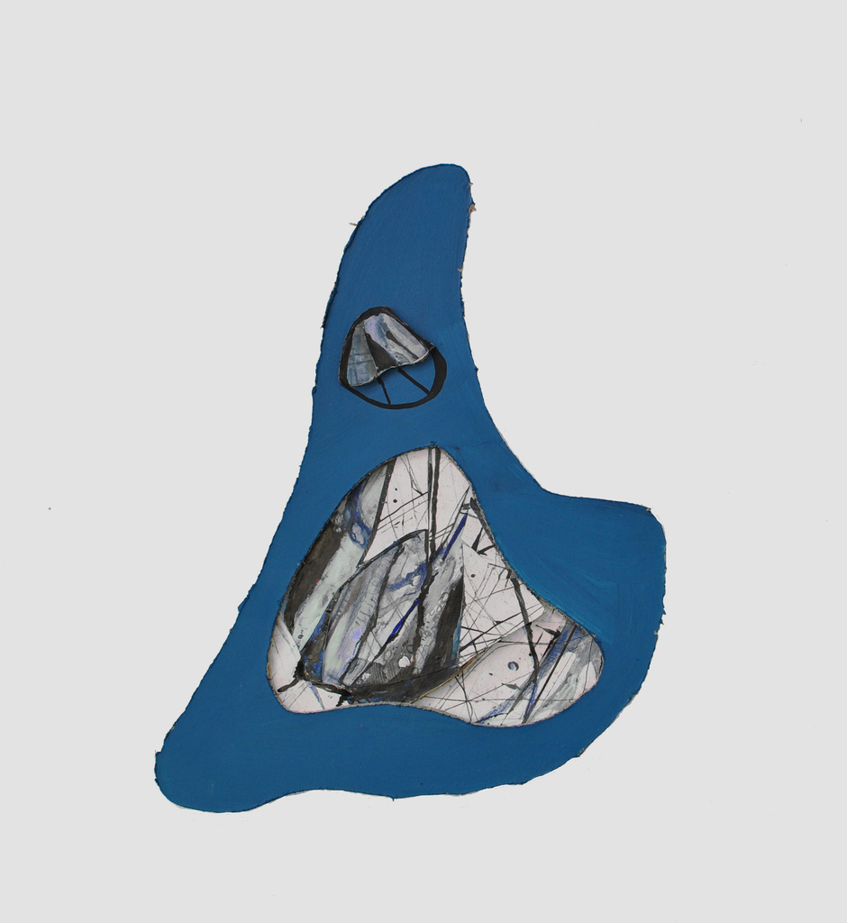 Blauw Papier Karton Kunst Collage Wandobject Zwartwit Organische