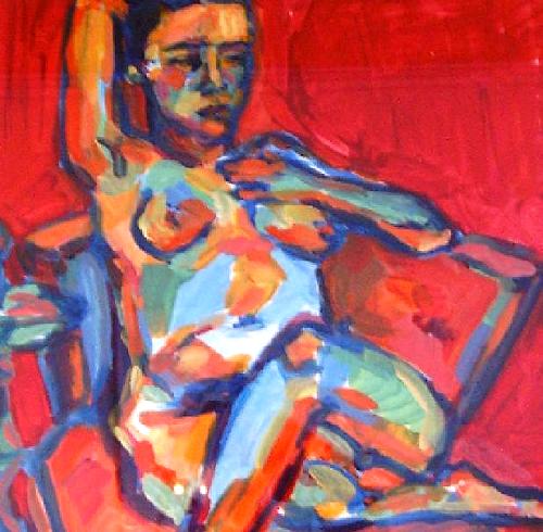 schilderij waarmee de Folio prijs is gewonnen tijdens haar studie.op klein formaat en grove penceelstreken geschilderd.