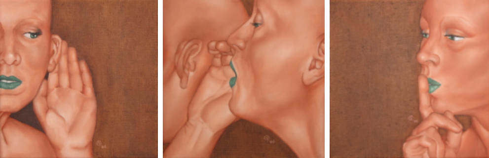 Drieluik Portret Gezichten Liggend Bruintinten Bruin Bianca Roddel Doek Klein Intiem