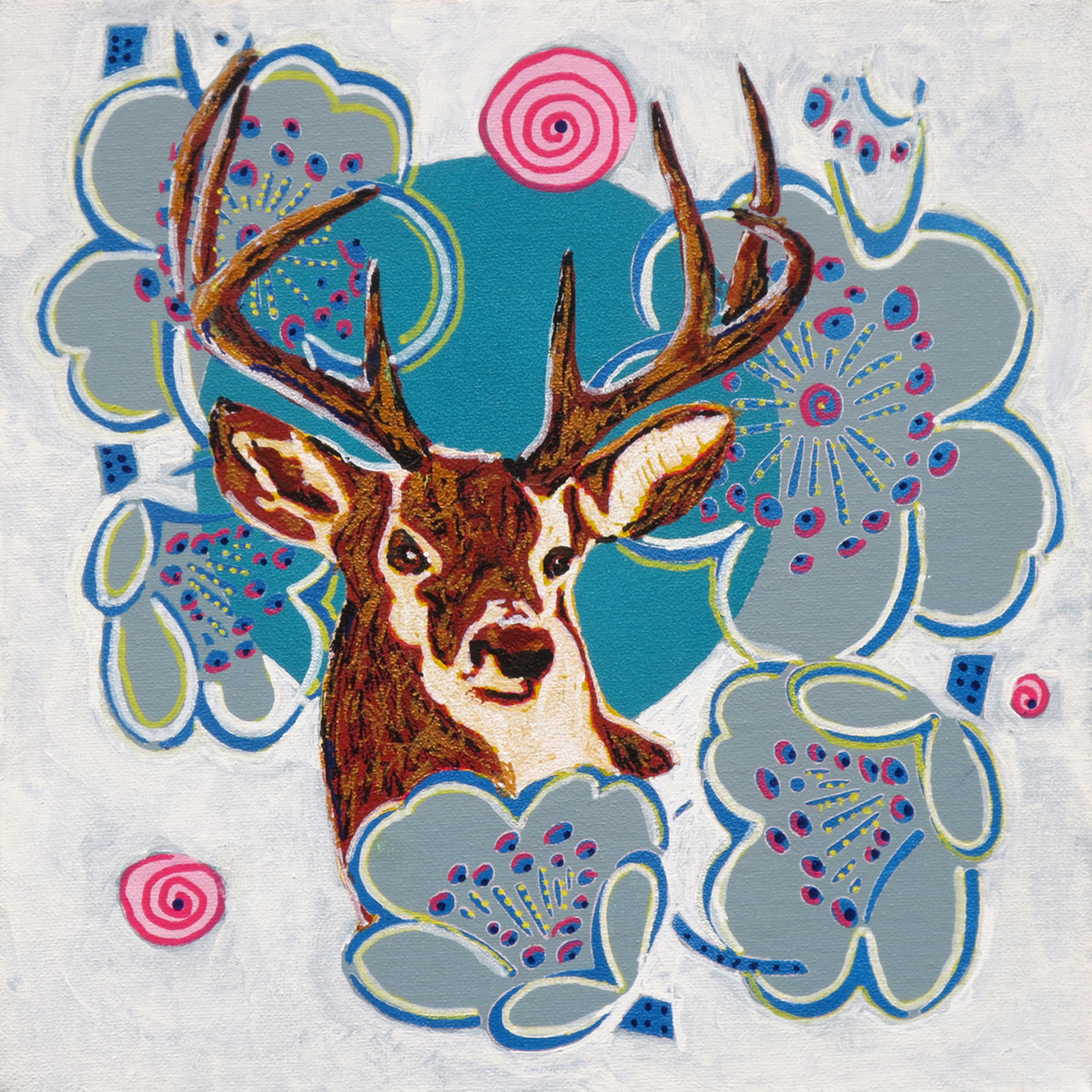 Schilderij Grijs Acryl Bloemen Vierkant Ontwerp Hertje