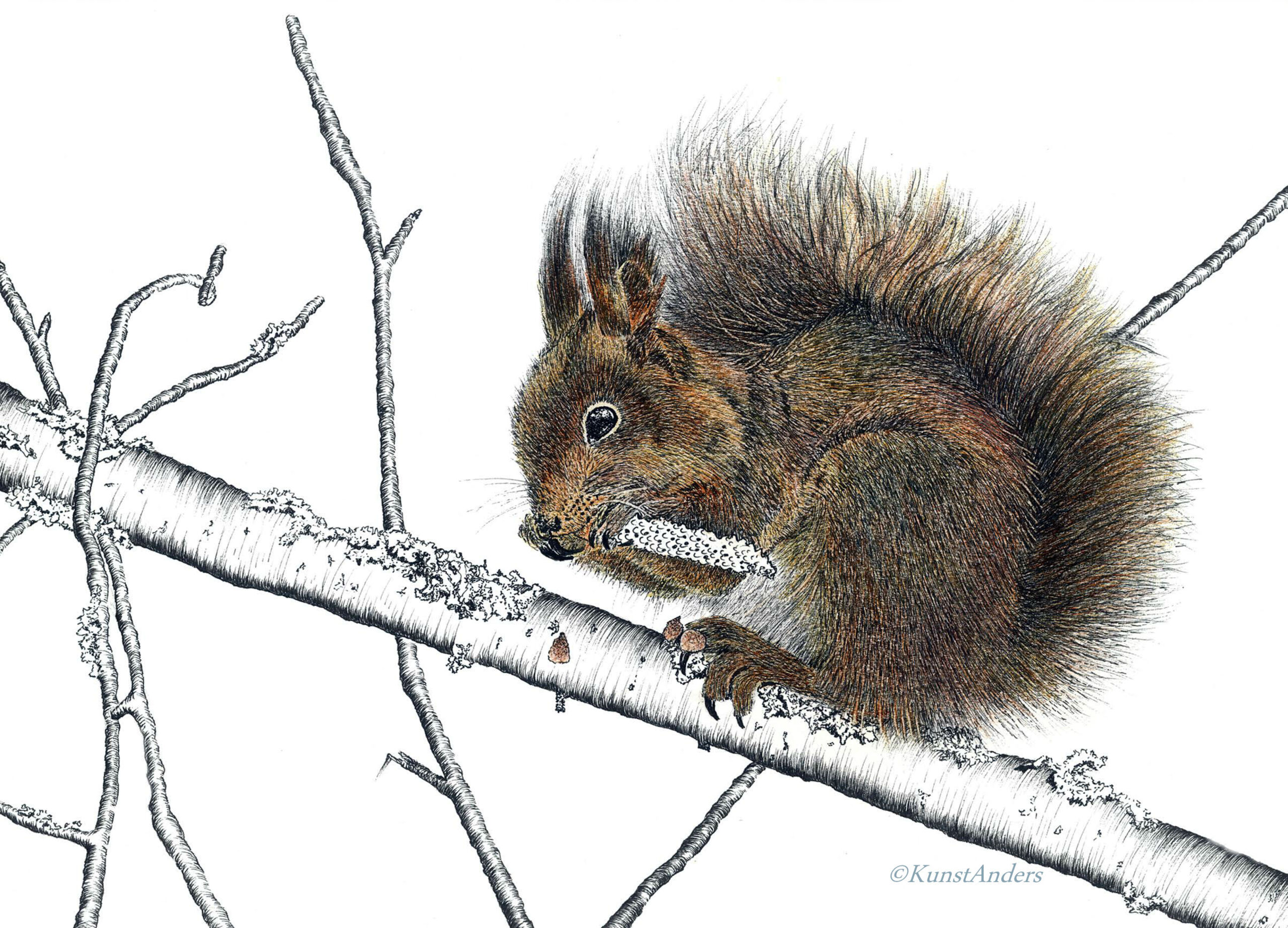 Wildlife Natuur Eekhoorn Pentekening Kunstanders