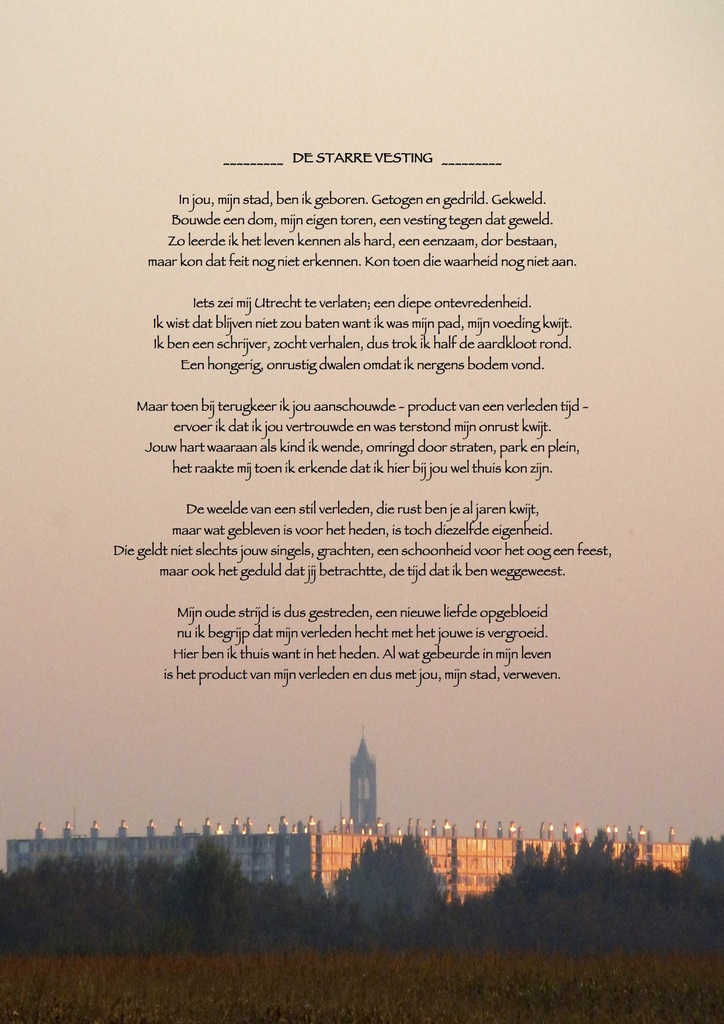 Mijn creaties zijn het resultaat van een zoektocht naar mijn ware aard, vrij van bewijs- en prestatiedrang. Ik geef vorm aan mijn indrukken door middel van schrijven, dichten, fotograferen, tekenen en schilderen en maak waar mogelijk gebruik van natuurlijke materialen. Al mijn creaties zijn dan ook stuk voor stuk een ode aan de Aarde, de Moeder die ons leven hier mogelijk maakt. Mijn boeken zijn te bestellen op www.boekenbestellen.nl zoekterm: Tara van Utrecht.