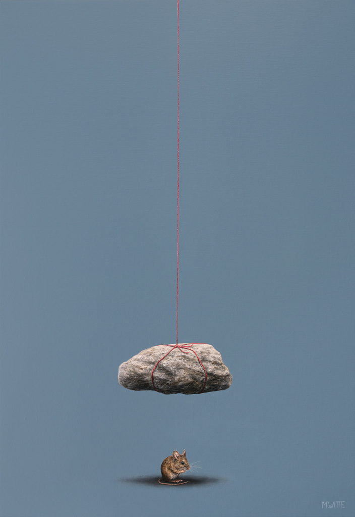 Marcel Witte is een visuele verhalenverteller die de hedendaagse maatschappij subtiel bekritiseert. Zijn schilderijen van dieren tegen een lege achtergrond balanceren tussen realisme en fantasie.