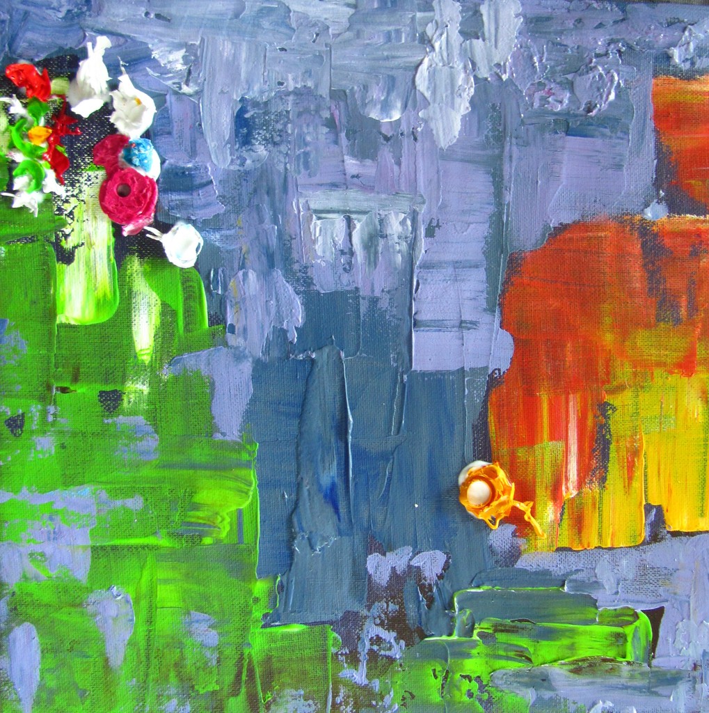 Restanten verf, hardgeworden verf in de tubedoppen, mooie muziek op de achtergrond......een lila symfonie.