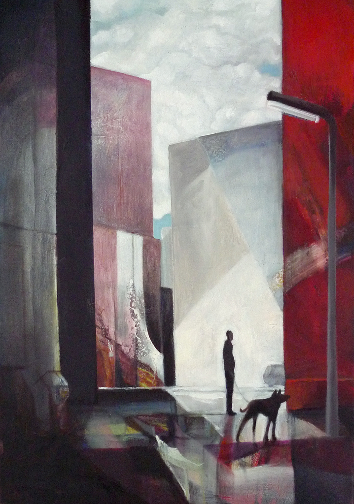Abstract Figuratief Man Hond Stad Persoon