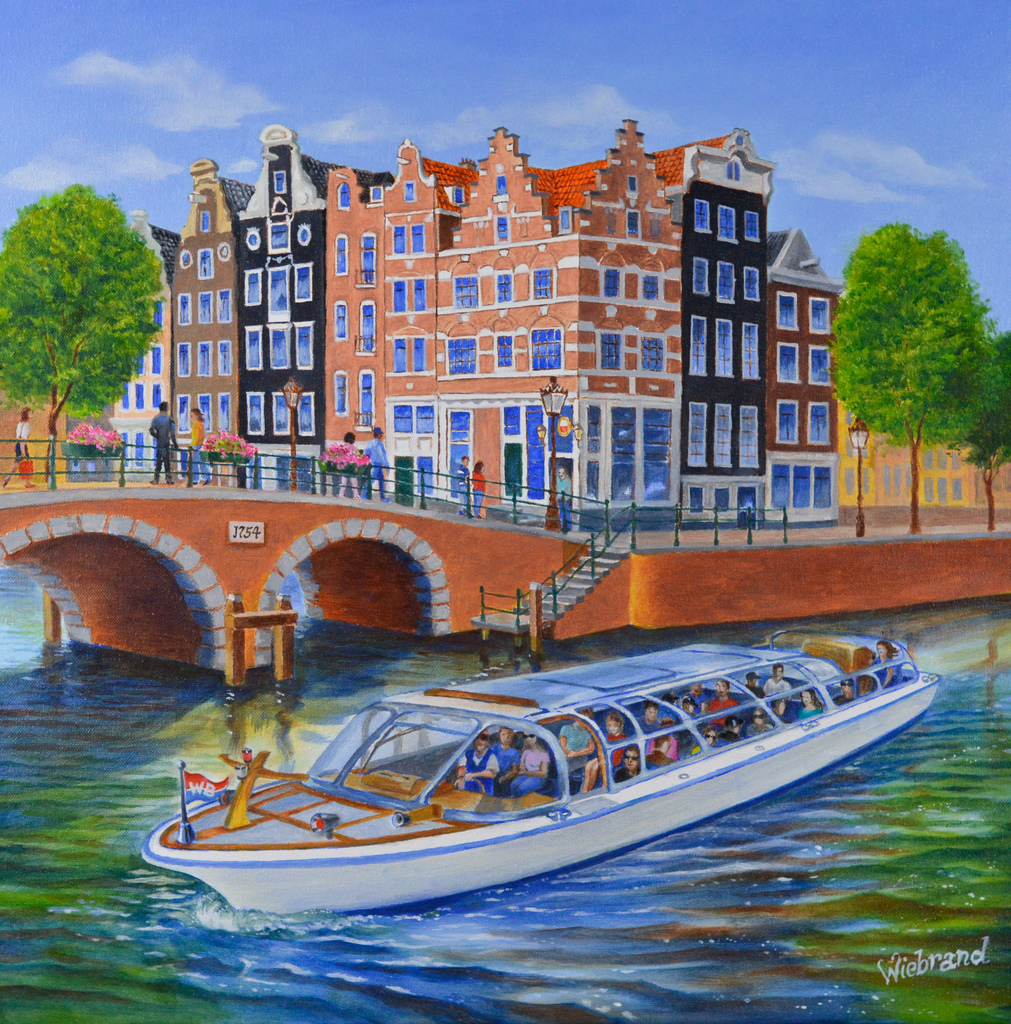 Mensen Water Amsterdam Stadsgezicht Golven Grachten Rondvaartboot Grachtenpanden Gracht Boot Vakantie Zomer