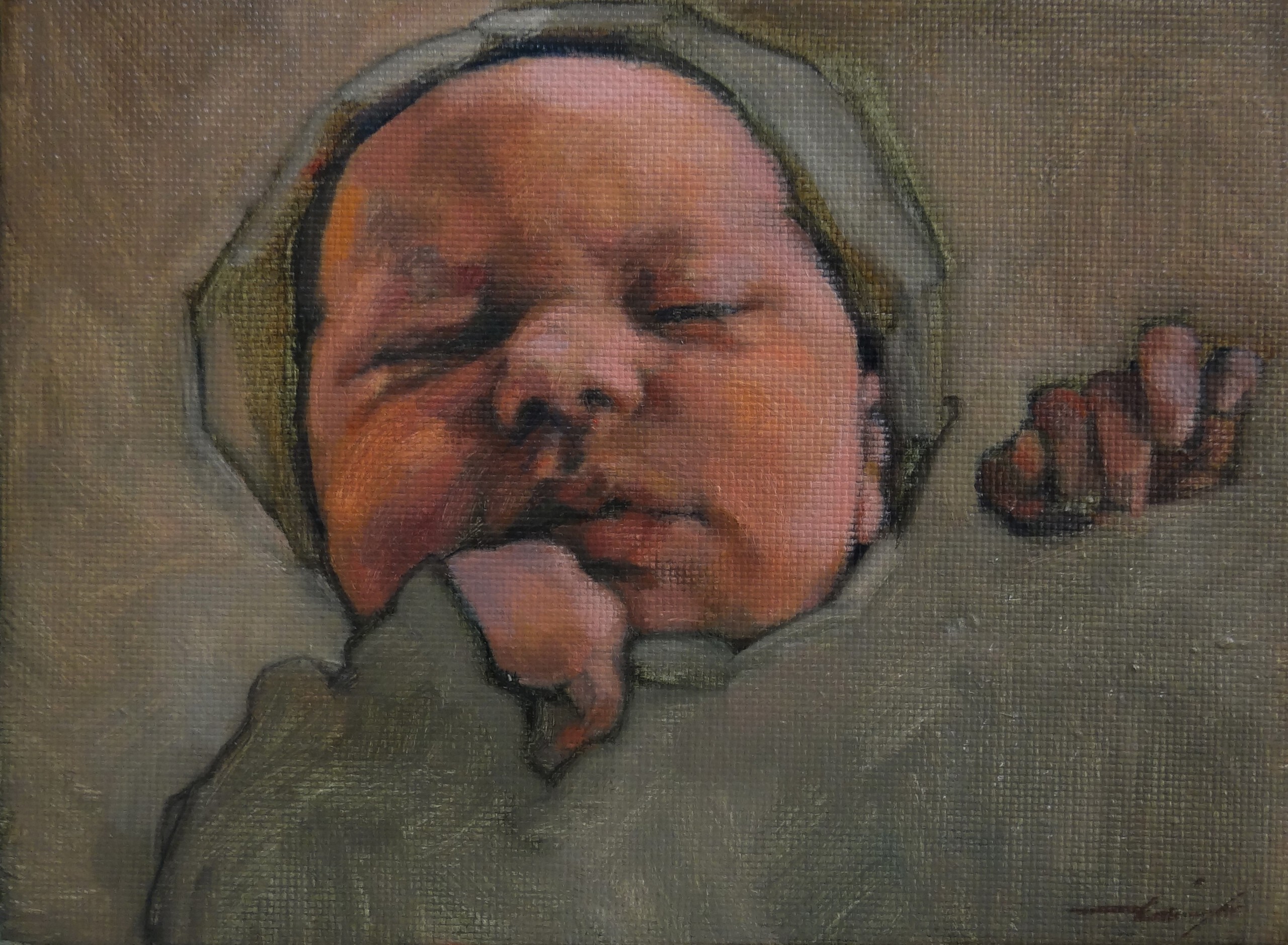 Schilderij Meisje Kind Portret Baby Portrait Painting Girl Child Pasgeboren Newborn