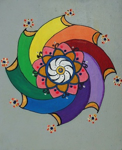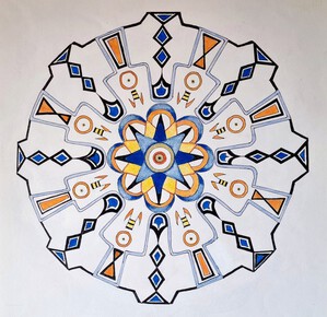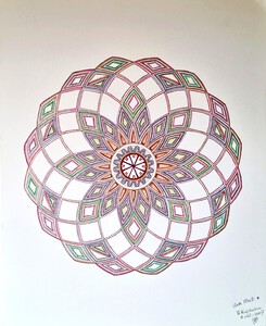 Meditatieve, symbolische kunst en bijzondere mandala's. Verrassende, kleurrijke tekeningen en schilderijen in acryl en zandpasta.