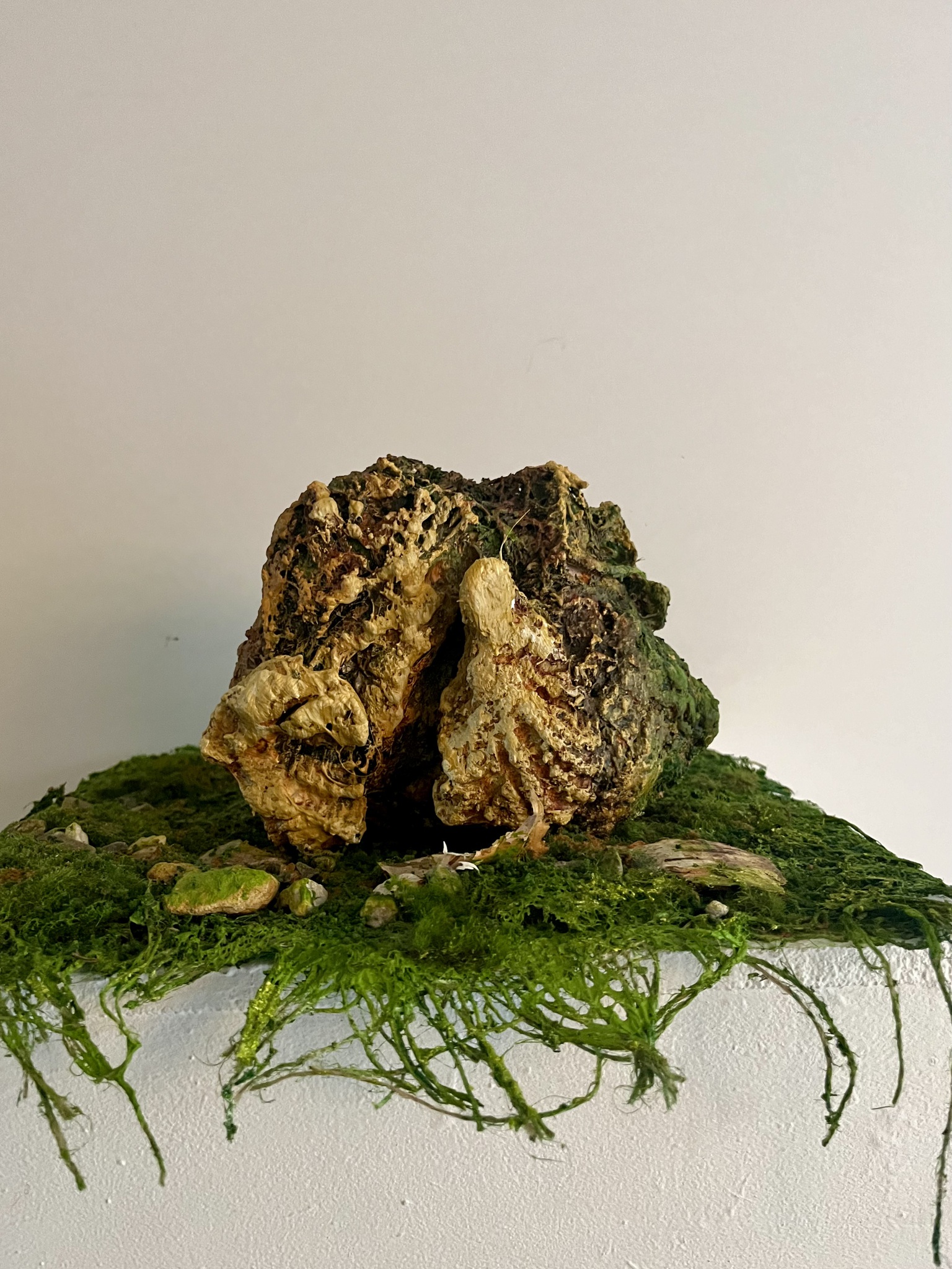 Uniek gemaakte Herinneringsbeeld/Urn Ik zie het als een gedenk-STEEN op een natuurplekje met ruimte om AS en/of een dierbare herinnering in te bewaren.. ik hou van rode aarde , stenen /rotsen en van MOS ... De kracht van de natuur . De schoonheid ervan . Die liefde is terug te zien in veel van mijn Urnen ... ( bovenstaande. Foto om n idee te krijgen van de ruimte waarin je de herinnering kan bewaren)
