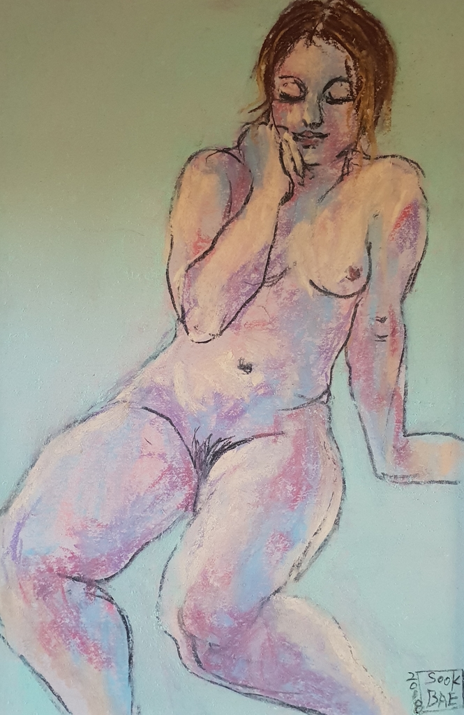 Sook Bae(1959)is in 1980 afgestudeerd aan de young nam college(Toegepast kunsten) in zuid-korea In 1996 volgde zij modeltekenen aan de Grand Academie te parijs Sins 1997 woont ze in Amsterdam. "ik teken en schilder direct naar model Het onderwerp dat my blijvend inspireert is de mens; poserend of bezig met alledaagse dingen, De techniek van het tekenen is sumi-e is mijn grote Liefde. Als ik goed bezig ben, werken mijn ogen en handen Samen en is mijn hoofd leeg; het voelt als een Meditatie"