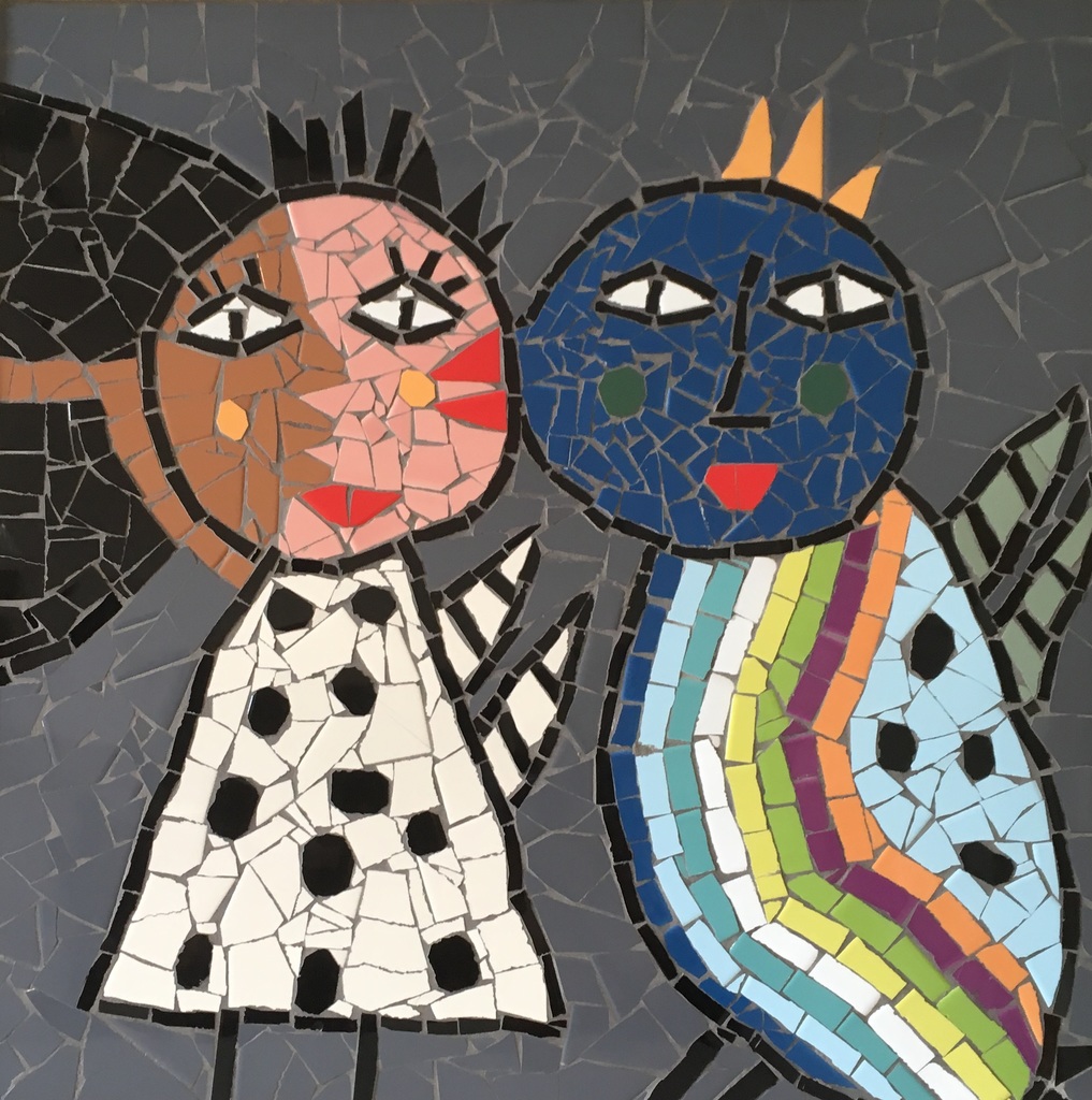 Mozaïekkunst in Arnhem. Eigen creaties van kleuren en thema's. Opdrachten met een persoonlijk verhaal als leidraad.