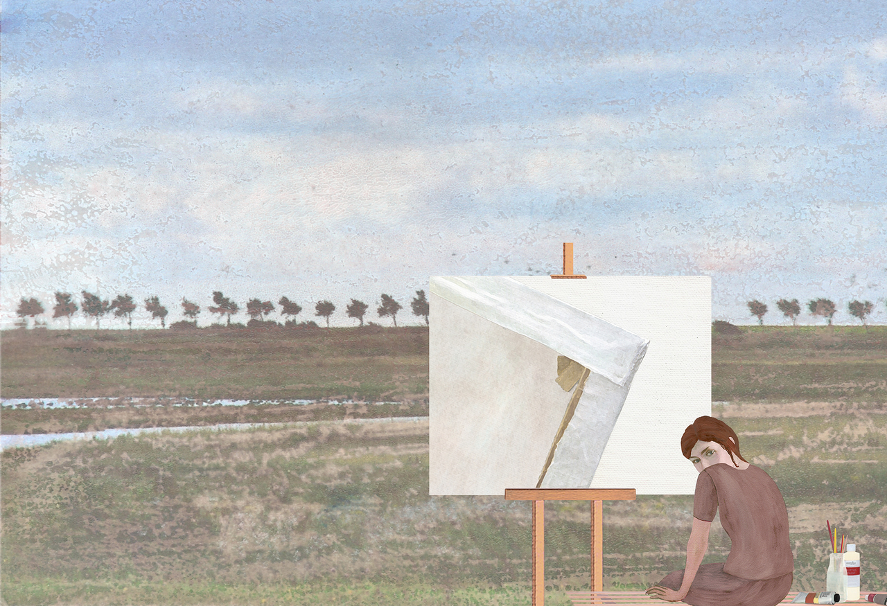 Schilderij Landschap Vrouw Art Woman Kunst Painting Landscape Ironie Creativiteit Irony Creativity