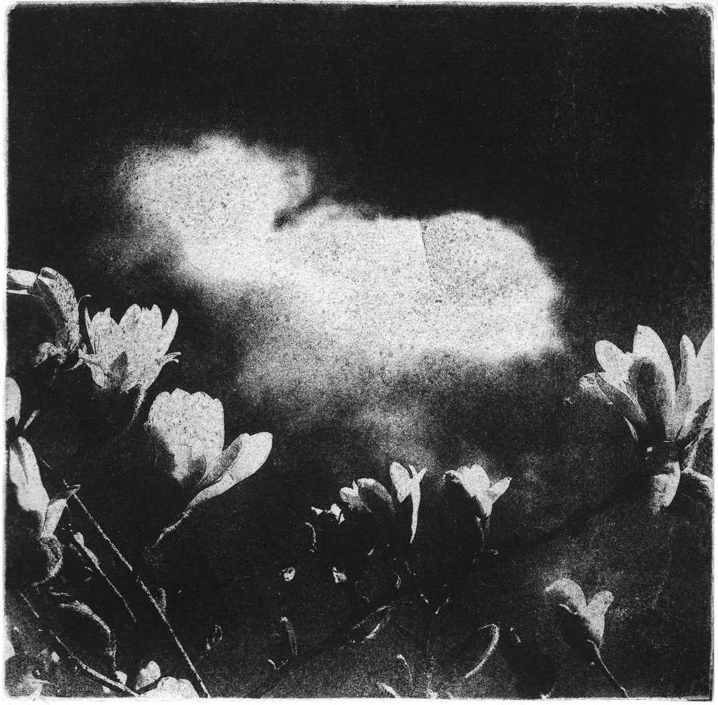 Wit Grijs Zwart Lucht Plant Uitzicht Wolk Magnolia Papierlitho Anastatischer Umdruck